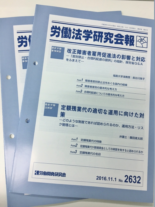 「労働法学研究会報」No.2632,労働開発研究会(平成28年11月1日発行)